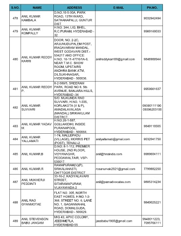 S.NO. NAME ADDRESS E-MAIL PH.NO.