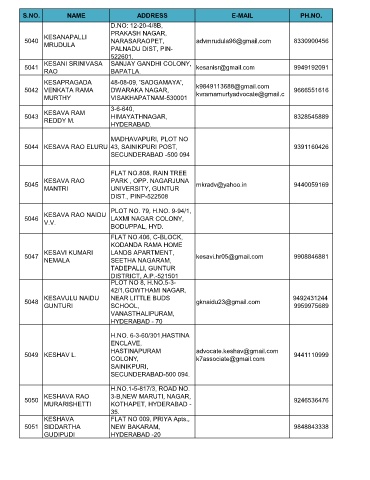 S.NO. NAME ADDRESS E-MAIL PH.NO.