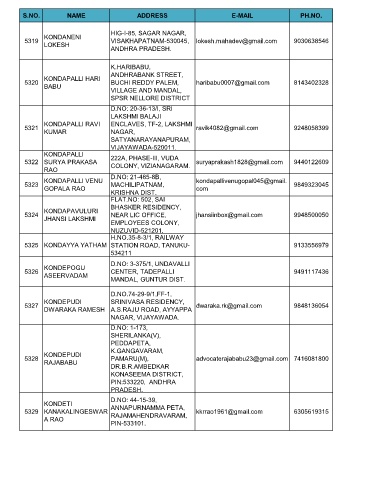 S.NO. NAME ADDRESS E-MAIL PH.NO.