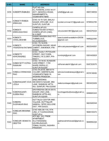 5330 KONDETI RAMUDU 20/11, NOWROJI ROAD, krlb85@gmail.com 9441180059