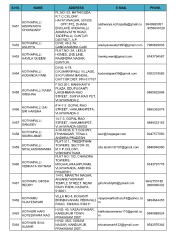 S.NO. NAME ADDRESS E-MAIL PH.NO.