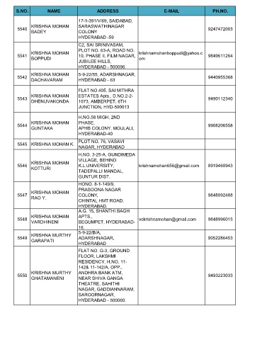 S.NO. NAME ADDRESS E-MAIL PH.NO.