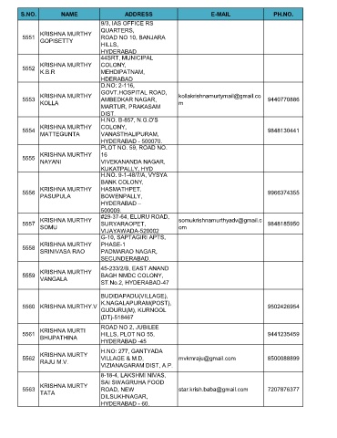 S.NO. NAME ADDRESS E-MAIL PH.NO.