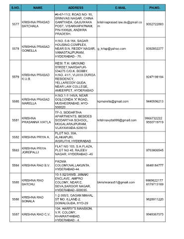 S.NO. NAME ADDRESS E-MAIL PH.NO.