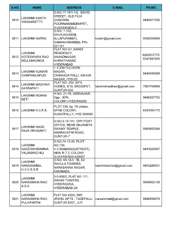 5819 NARASAMMA, RAVULA TOWERS, lakshmirachuri@gmail.com 9493289351