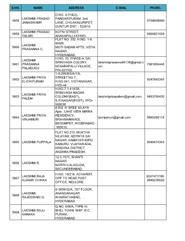 S.NO. NAME ADDRESS E-MAIL PH.NO.