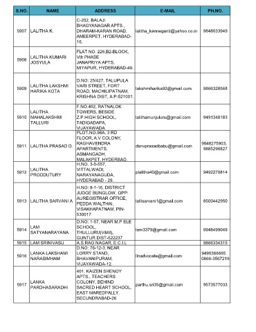 5907 LALITHA K. DHARAM-KARAN ROAD, lalitha_kanneganti@yahoo.co.in 9848033949