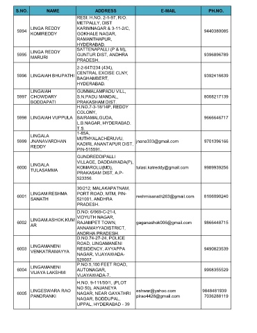 S.NO. NAME ADDRESS E-MAIL PH.NO.