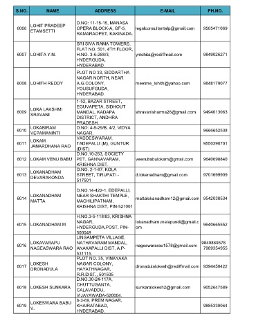 6007 LOHITA Y.N. H.NO. 3-6-288/3, ynlohita@rediffmail.com 9849026271