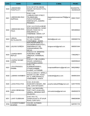 S.NO. NAME ADDRESS E-MAIL PH.NO.