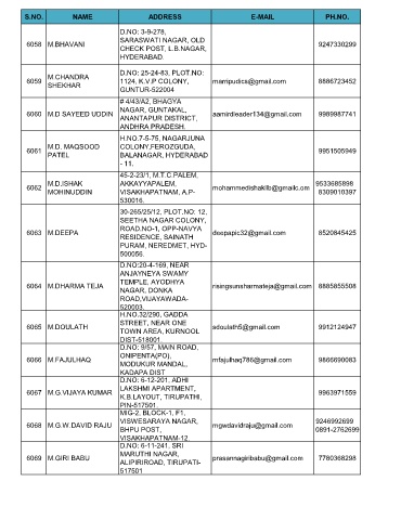 S.NO. NAME ADDRESS E-MAIL PH.NO.