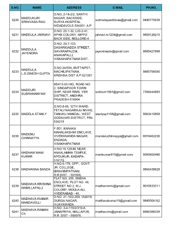 S.NO. NAME ADDRESS E-MAIL PH.NO.