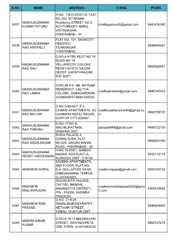 S.NO. NAME ADDRESS E-MAIL PH.NO.