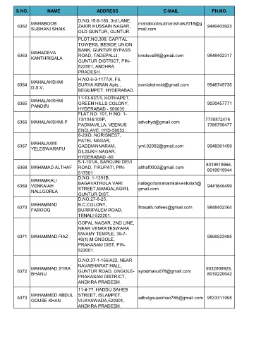 S.NO. NAME ADDRESS E-MAIL PH.NO.