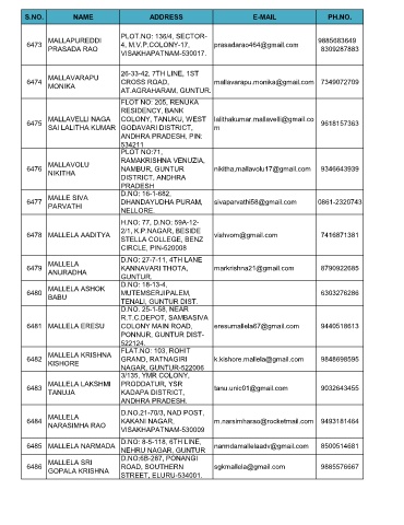 S.NO. NAME ADDRESS E-MAIL PH.NO.