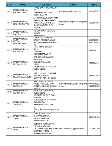 S.NO. NAME ADDRESS E-MAIL PH.NO.