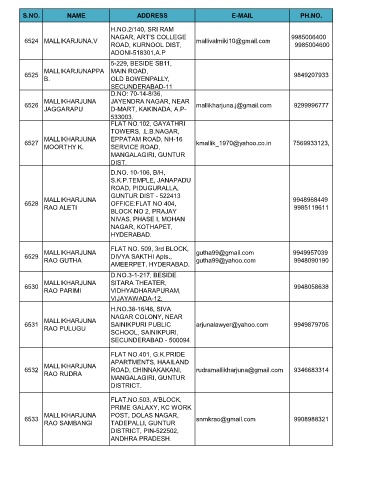 S.NO. NAME ADDRESS E-MAIL PH.NO.