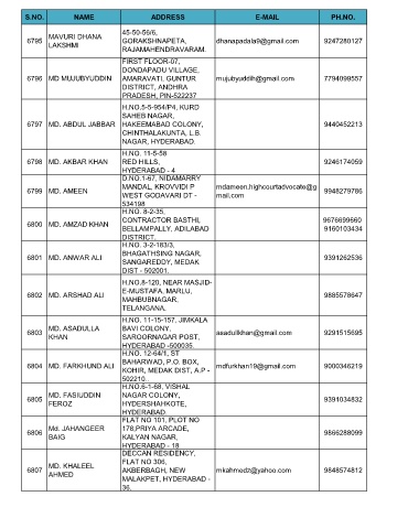 S.NO. NAME ADDRESS E-MAIL PH.NO.