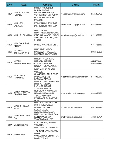 6899 MERUGU SUMITHA KRISHNA MANDIR, KADIRI, sumithameruga@gmail.com 6281939896