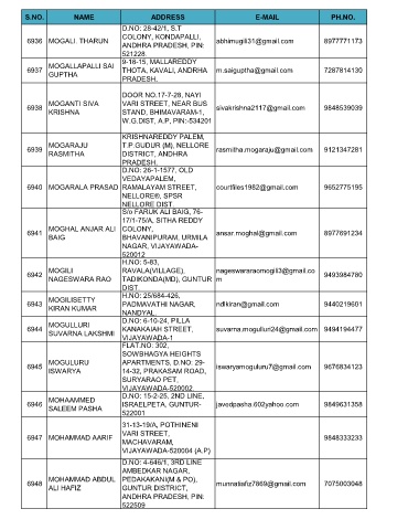S.NO. NAME ADDRESS E-MAIL PH.NO.