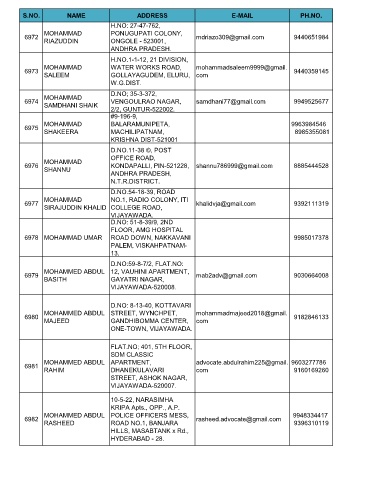 S.NO. NAME ADDRESS E-MAIL PH.NO.