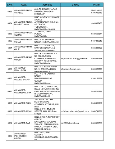 S.NO. NAME ADDRESS E-MAIL PH.NO.