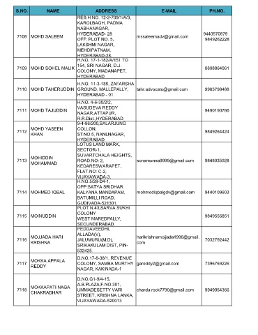 S.NO. NAME ADDRESS E-MAIL PH.NO.