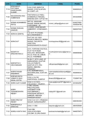 S.NO. NAME ADDRESS E-MAIL PH.NO.