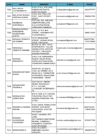 S.NO. NAME ADDRESS E-MAIL PH.NO.