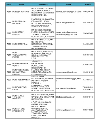S.NO. NAME ADDRESS E-MAIL PH.NO.