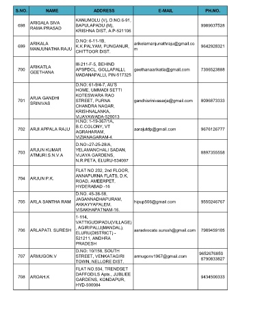 S.NO. NAME ADDRESS E-MAIL PH.NO.