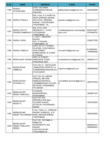 7285 SUNDARAIAH NAGAR, pathikondamurali@gmail.com 9393628906