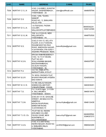 7308 MURTHY C.V.L.N NAGAR, BASHEERBAGH, clnm@rediffmail.com 9848055798