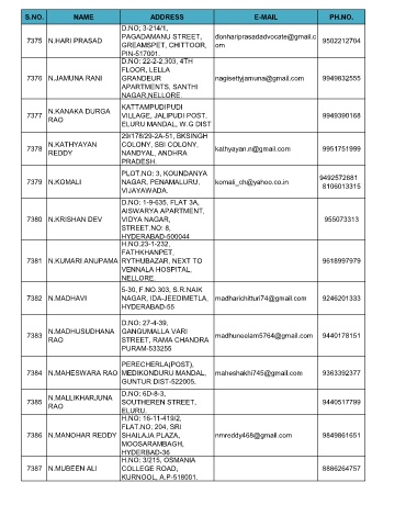 S.NO. NAME ADDRESS E-MAIL PH.NO.
