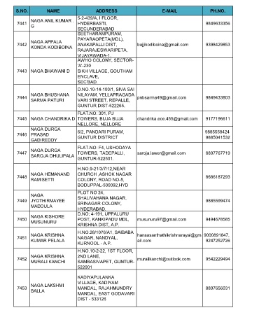 S.NO. NAME ADDRESS E-MAIL PH.NO.