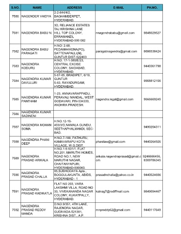 7581 NAGENDRA BABU N. HILL TOP COLONY, nnagendrababu@gmail.com 9848029527