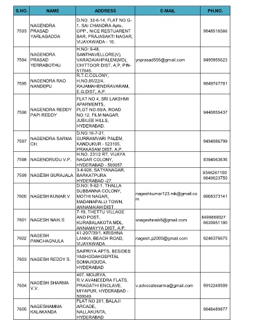 S.NO. NAME ADDRESS E-MAIL PH.NO.