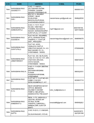 S.NO. NAME ADDRESS E-MAIL PH.NO.