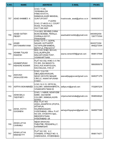 S.NO. NAME ADDRESS E-MAIL PH.NO.