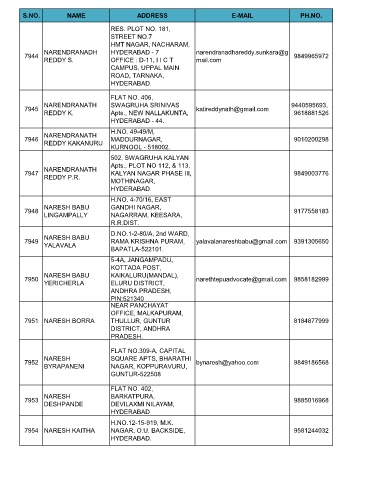 S.NO. NAME ADDRESS E-MAIL PH.NO.