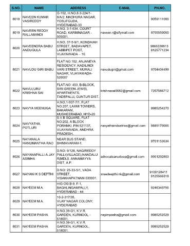S.NO. NAME ADDRESS E-MAIL PH.NO.