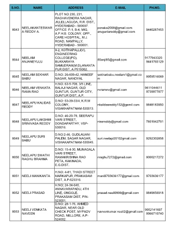 S.NO. NAME ADDRESS E-MAIL PH.NO.