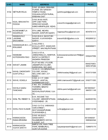 S.NO. NAME ADDRESS E-MAIL PH.NO.