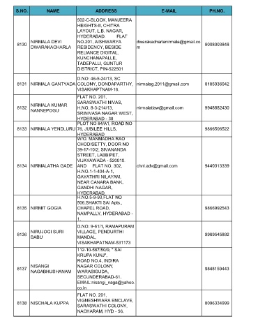 S.NO. NAME ADDRESS E-MAIL PH.NO.