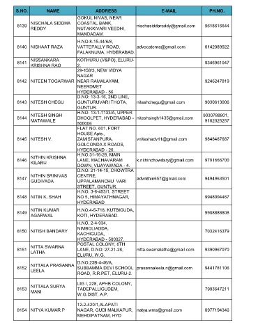 S.NO. NAME ADDRESS E-MAIL PH.NO.