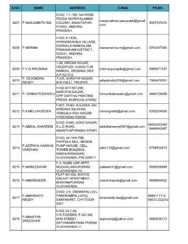 S.NO. NAME ADDRESS E-MAIL PH.NO.