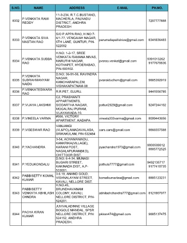 S.NO. NAME ADDRESS E-MAIL PH.NO.