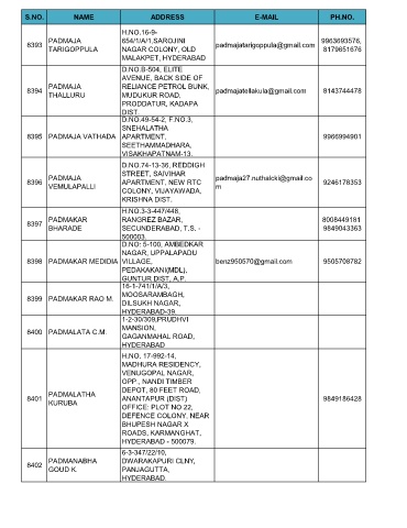 S.NO. NAME ADDRESS E-MAIL PH.NO.