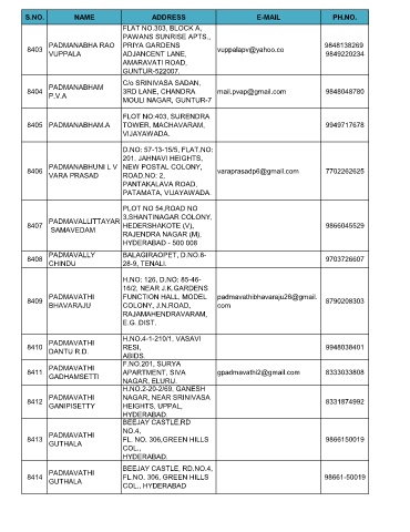 S.NO. NAME ADDRESS E-MAIL PH.NO.