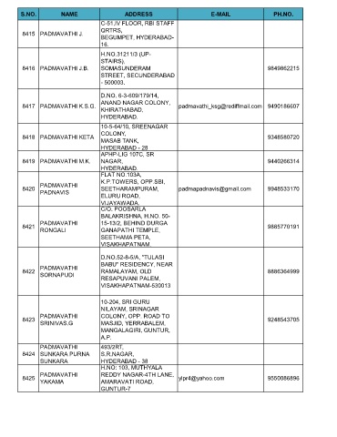 8417 PADMAVATHI K.S.G. padmavathi_ksg@rediffmail.com 9490186607